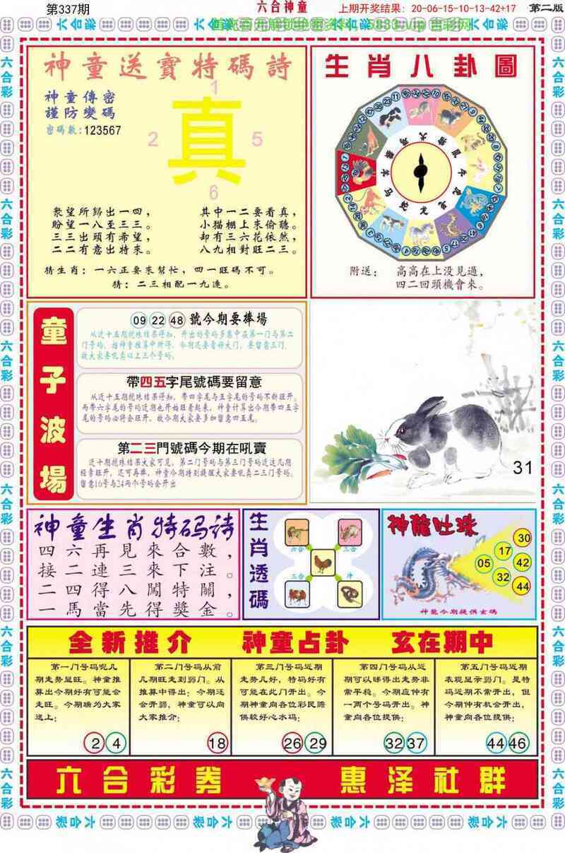 传真337期 今期生肖三八开,牛郎七夕鹊桥会 一五得志君留意,小注怡情乐开怀 七出三一有财现,八戒好色成正果 二三组合有玄机,三四组合有财气 滔滔不绝 同室操戈解:今期生肖三八开,牛郎七夕鹊桥会。三八解龙,明肖牛,一五得志君留意,小注怡情乐开怀。一五解兔,七出三一有财现,八戒好色成正果。七解猪,明肖猪,二三组合有玄机,三四组合有财气。二三解羊,三四解猴 拐特生肖:龙牛兔猪羊鸡蛇马猴 |